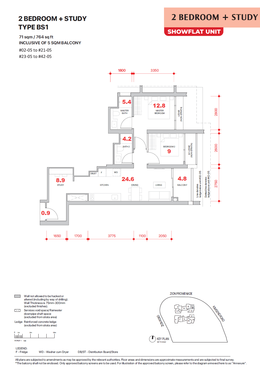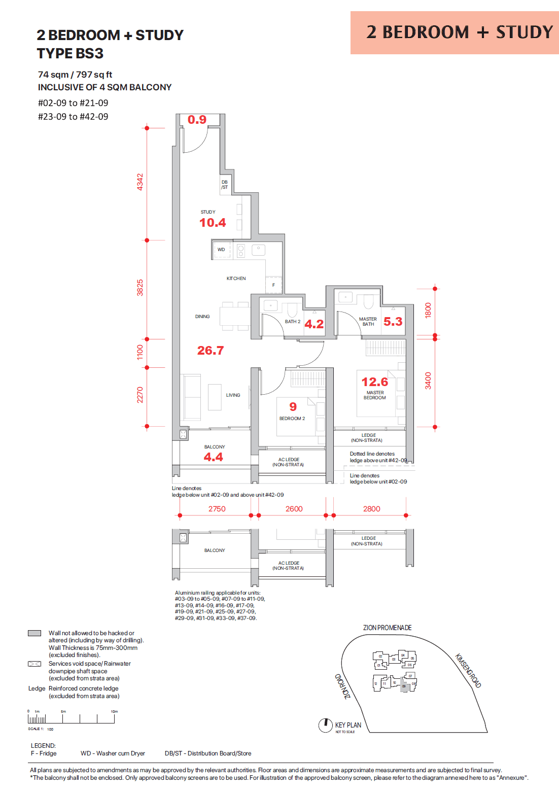 | 2 Bedroom + Study | 764 – 797 | 120 | TBA |